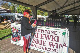 Mimo chłodu centrum Spały wypełniło się kramami i publicznością. Wzięcie miały wiklinowe kosze i koszyki, przydatne do zbierania grzybów i na kończące się wykopki ziemniaków. Produkcja alkoholi to w Polsce skomplikowany biznes, nie ze względu na technologię, ale z powodu przepisów. Jednak są tacy, którzy się na to decydują. Do Spały przyjechał producent i przywiózł butelki z winami, nalewkami i sokami produkowanymi rzemieślniczo (choć nie wiem czy to dobre słowo) z krajowych owoców: wiśni, aronii, porzeczek czerwonych i czarnych, truskawek, jabłek, a nawet z jarzębiny i mirabelek. Sprzedawca tych trunków obłożonych akcyzą miał ze sobą fiskalną kasę. I niech się nikomu nie wydaje, że jego wina przypominają dawne "jabcoki", czyli wina marki wino. Nic podobnego. W Spale był po raz pierwszy, ale wróci tu na dwudniowy jarmark hubertowski.