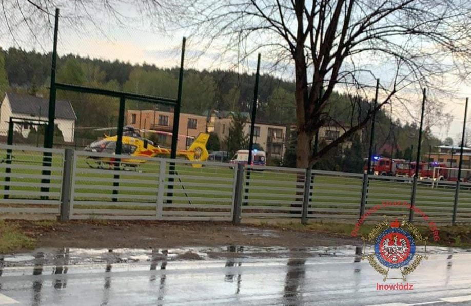 W Inowłodzu kierowca hyundaia stracił panowanie nad pojazdem. Zjechał z drogi i uderzył w betonowy przepust. Ciężko ranny został zabrany śmigłowcem do szpitala.
