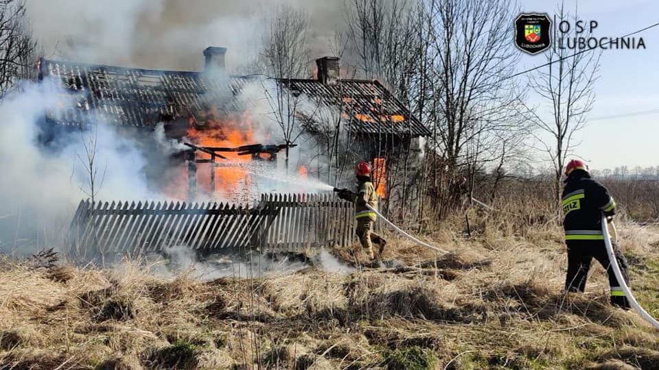 W piątek, 9 kwietnia strażacy dostali zgłoszenie o pożarze drewnianego budynku w miejscowości Dębniak (gm. Ujazd). Na miejsce zadysponowano siedem zastępów: cztery z PSP, dwa z OSP w Lubochni i OSP w Ujeździe. Pożar błyskawicznie się rozprzestrzenił. Na miejscu strażacy zastali budynek stojący w płomieniach.