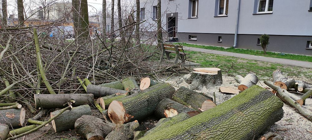 Do naszej redakcji zadzwoniła kobieta zbulwersowana tym, co widzi za oknem. Klon pospolity o obwodzie pnia 191 cm został pocięty na kawałki. Jak twierdziła kobieta, drzewo było zdrowe i pielęgnowane przez mieszkańców wspólnoty mieszkaniowej.