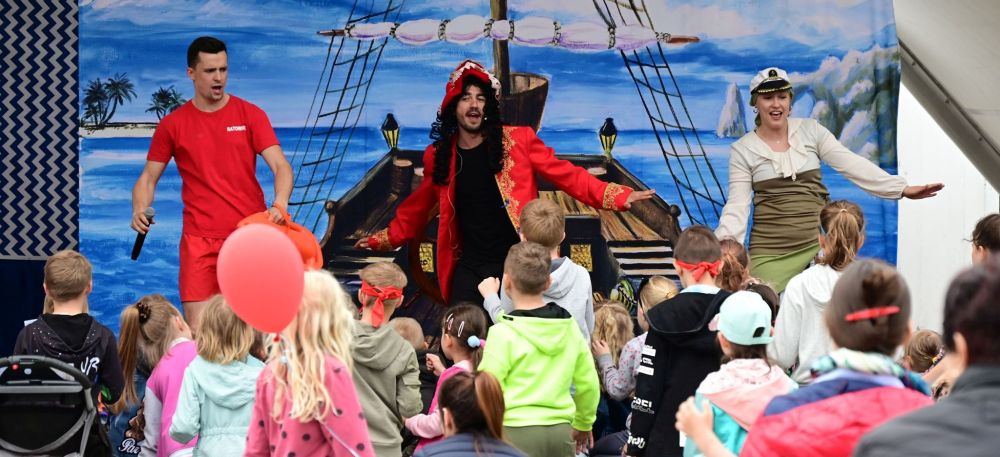 Na scenie wystąpili aktorzy Teatru Katarynka w spektaklu pt. "Morskie opowieści". Później zabawy i animacje prowadzili instruktorzy Miejskiego Centrum Kultury (organizatora imprezy).