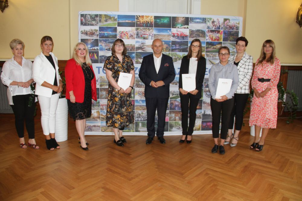 Posiedzenia komisji egzaminacyjnych dla nauczycieli ubiegających się o awans na stopień nauczyciela mianowanego odbyły się 29 czerwca br. Teraz uroczyście akty nadania wyższego stopnia w zawodzie dokonał prezydent miasta Marcin Witko.