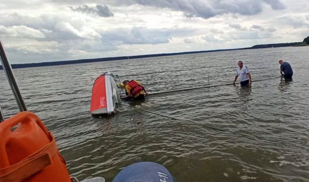 W rejonie Bronisławowa wywróciła się łódź żaglowa. Trzy osoby znalazły się w wodzie. Pomogli im policjanci i ratownicy WOPR