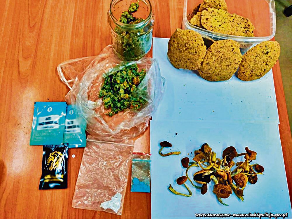 Na zamieszkałej przez niego posesji policjanci znaleźli całą paletę środków odurzających.