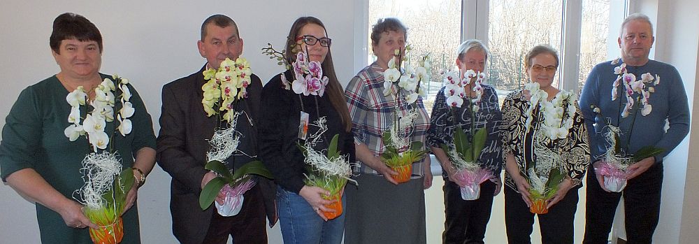 Obecnych na zebraniu obdarowano kwiatami, zapraszając równocześnie na słodki poczęstunek.
