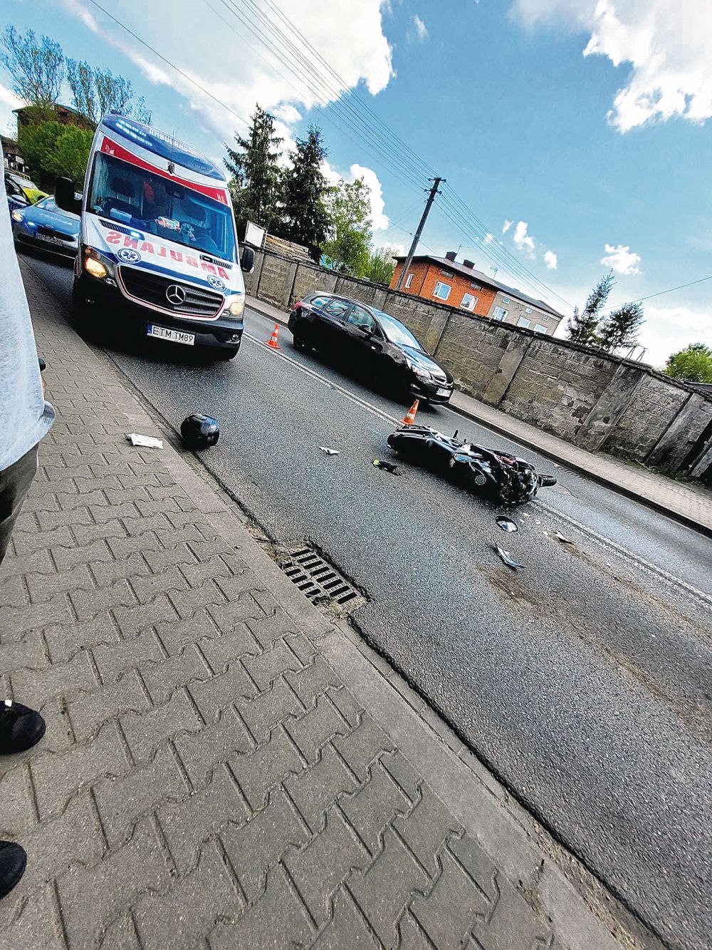 Nastolatek kierujący motocyklem nie zachował bezpiecznej odległości i wjechał w tył osobowego opla. Z obrażeniami ciała został przewieziony do szpitala. Okazało się, że kierował jednośladem bez wymaganych uprawnień.