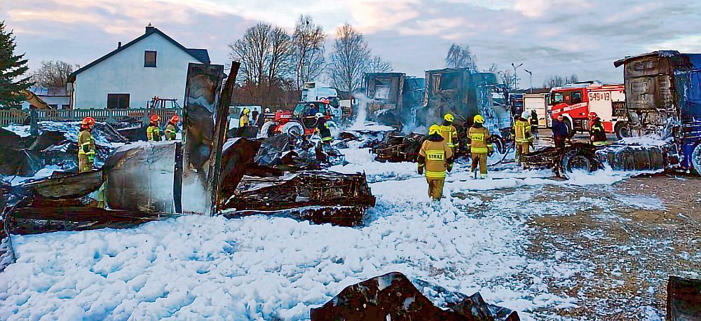 We wtorek, 3 stycznia kłęby dymu unosiły się nad Krzemienicą (gm. Czerniewice). Płonęły ciężarówki i naczepy.