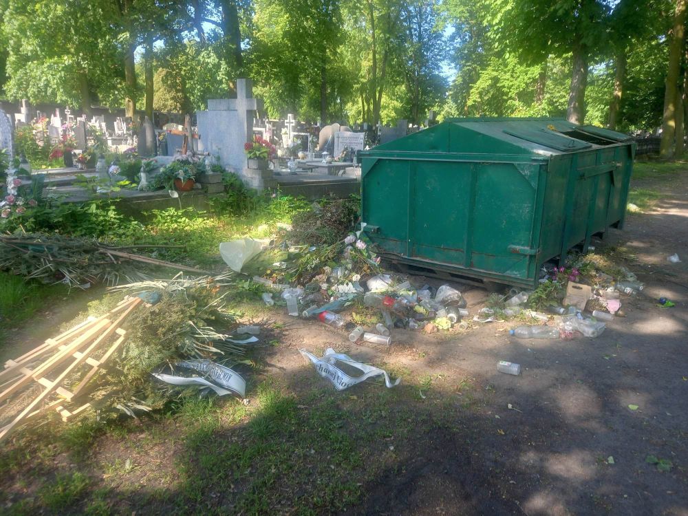 Wysoka trawa była problemem na cmentarzu ewangelicko-augsburskim. Trawy nie ma zostały śmieci.
