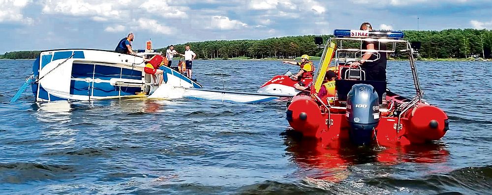 Jacht żaglowy przewrócił się na wysokości Zarzęcina. Dzięki szybkiej reakcji służb ratunkowych załodze nic się nie stało.