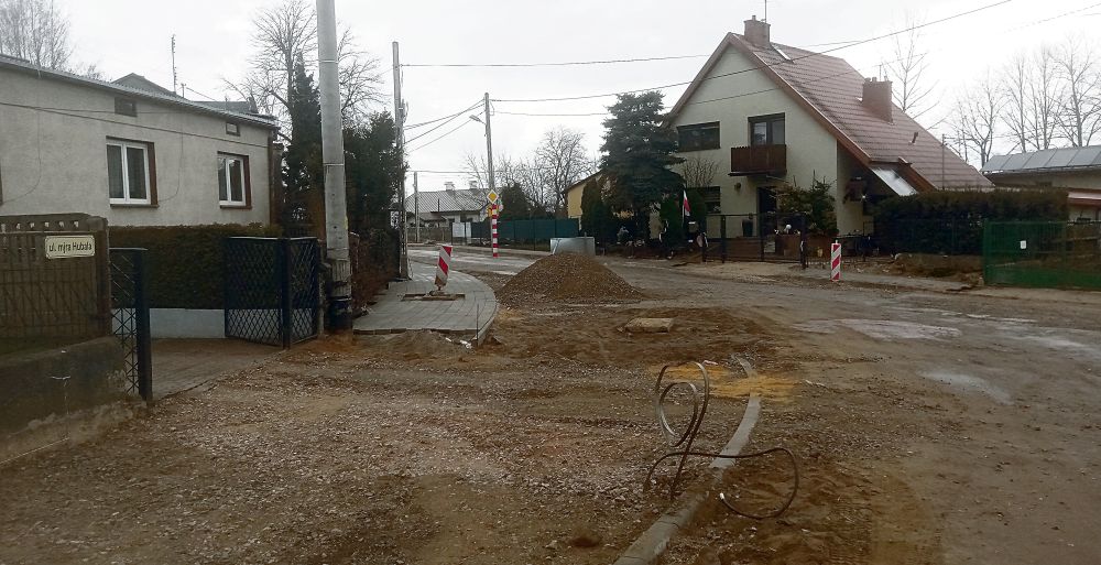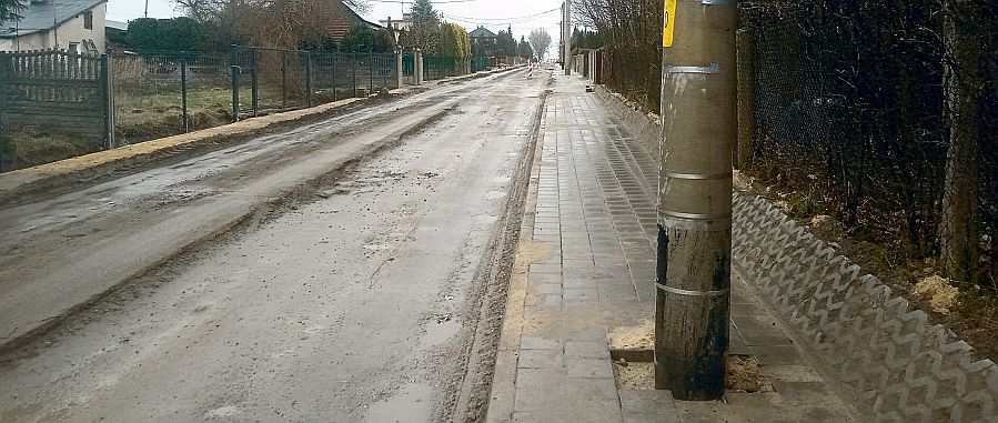 Problemów na placu budowy ulic Hubala i Gminnej ciąg dalszy. Niemal gotowe są już fragmenty chodników i ścieżek rowerowych, ale "powyrastały" na nich betonowe słupy. - Teraz pomalują je świecącą farbą i będzie OK - ironizują mieszkańcy Białobrzegów.