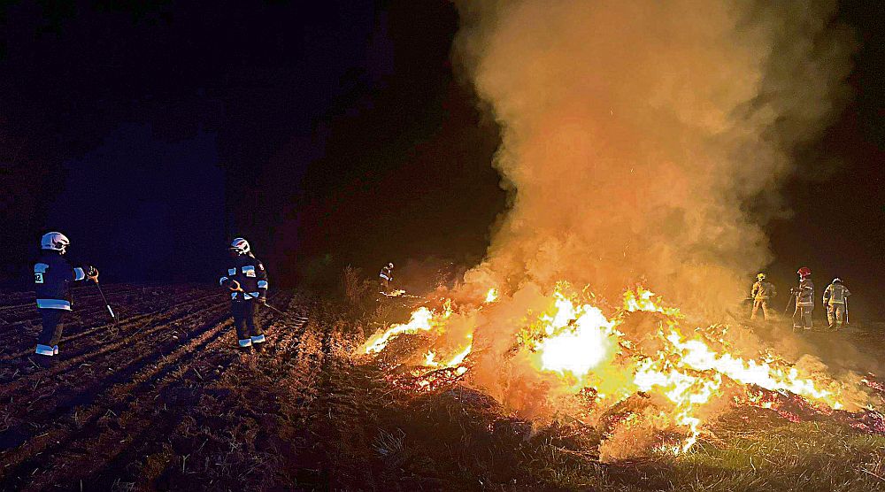 To była niespokojna noc dla mieszkańców Dębniaka, ale też dla strażaków z naszego powiatu. 6 października tuż przed godz. 2.00 wpłynęło zgłoszenie dotyczące pożaru bel słomy. Jako pierwsi na miejsce dotarli druhowie z OSP z Przesiadłowa. Do akcji włączone zostały również zastępy z PSP i OSP z Chorzęcina. Okazało się, że pożarem objęty jest w całości stóg słomy o wymiarach około 20x12x4 m. - Nasze działania polegały na zabezpieczeniu miejsca zdarzenia, sprawdzenia pobliskiego terenu w celu wykluczenia obecności ewentualnych osób poszkodowanych (na szczęście takich nie było) oraz podaniu dwóch prądów wody na pogorzelisko pożaru - relacjonuje kpt. Hubert Rogala, rzecznik prasowy komendanta PSP w Tomaszowie. Akcja gaśnicza została zakończona około godz. 6.30.