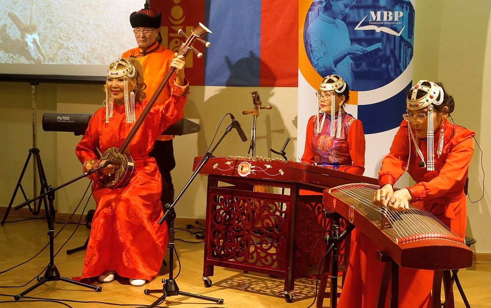 Goście Nocy Bibliotek mogli też posłuchać występu mongolskiego zespołu, ubranego w charakterystyczne stroje (na zdjęciu). Jego członkowie zaprezentowali m.in. gardłowy śpiew.