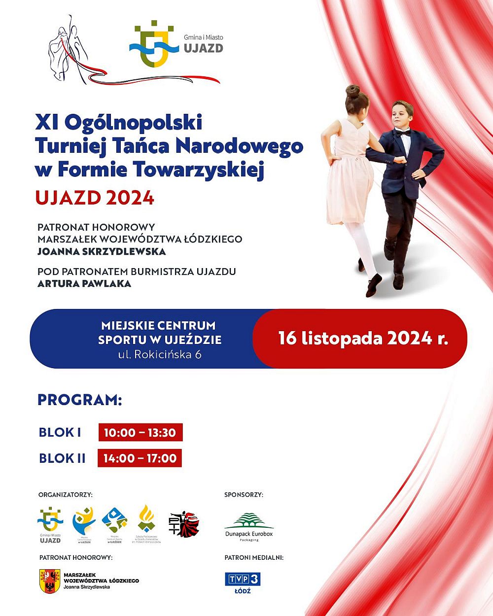 Władze miasta i gminy oraz Miejski Ośrodek Kultury zapraszają w sobotę, 16 listopada od godziny 10.00 do hali sportowej przy Szkole Podstawowej w Ujeździe na 11 Ogólnopolski Turniej Tańca Narodowego w Formie Towarzyskiej.