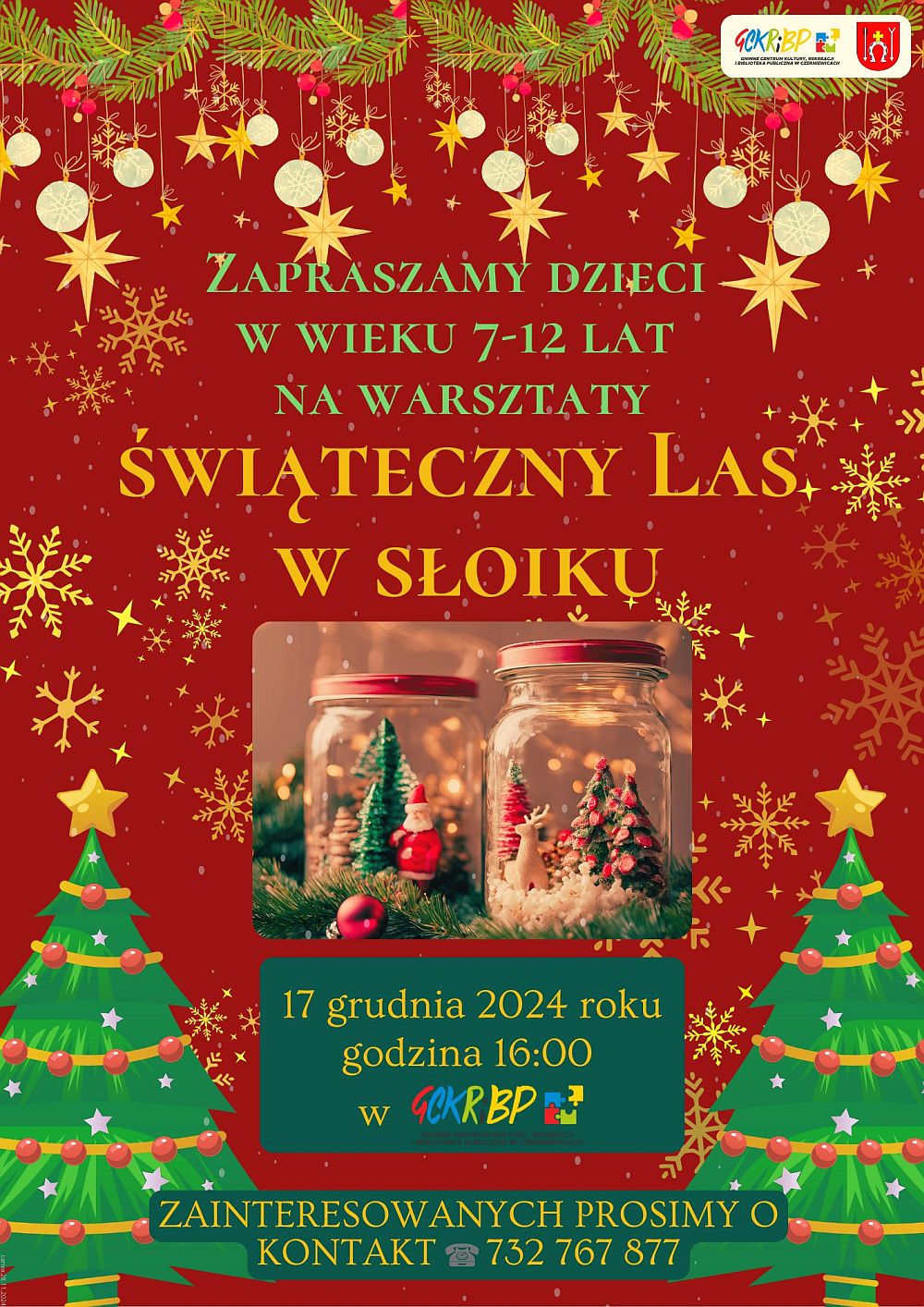 Dedykowane im bożonarodzeniowe warsztaty organizuje w swojej siedzibie we wtorek, 17 grudnia. Początek przewidziany jest na godzinę 16.00. Z uwagi na ograniczoną liczbę miejsc obowiązują wcześniejsze zapisy. W ich sprawie kontaktować się można telefonicznie pod numerem 732-767-877. (Fot. plakat wydarzenia)