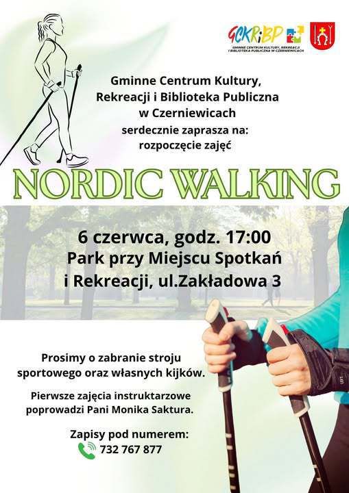 Pierwsze spotkanie zaplanowane jest na piątek, 6 czerwca na godzinę 17.00 w parku przy Miejscu Spotkań i Rekreacji przy ul. Zakładowej 3. Instruktaż poprowadzi Monika Saktura. Trzeba mieć ze sobą strój sportowy i własne kije. Zapisy przyjmowane są telefonicznie pod numerem 732-767-877.