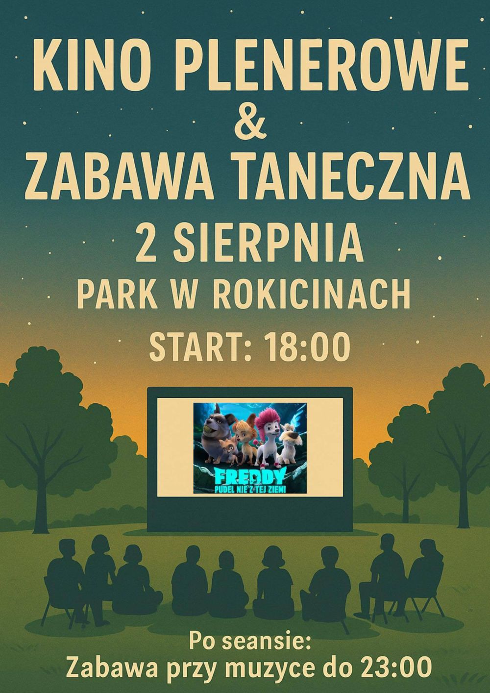 Pudel nie z tej ziemi". Początek seansu przewidziany jest na godzinę 18.00. Leżaki czy kocyki trzeba przynieść ze sobą, GOK zapewnia natomiast popcorn bez limitu. Na tym nie koniec wrażeń, bowiem zaraz po projekcji – około godz. 19.40 – rozpocząć się ma zabawa taneczna z didżejem. Zaplanowano ją do 23.00. Wstęp na obie atrakcje jest nieodpłatny.