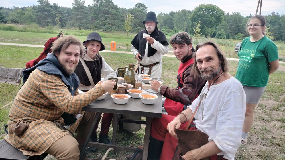 Stoły uginały się od kulinarnych specjałów, można było próbować do woli. A w wielkim garze gotował się gulasz, którym posilali się również rycerze z Kasztelanii Inowłodzkiej. Byli tego dnia bardzo zapracowani. Przygotowali pokazy walk, a dla najmłodszych mnóstwo atrakcji. – Chwilę się posilimy i wracamy do pracy. Fajnie, że możemy zainteresować dzieci historią, również lokalną – mówił Piotr Pastusiak, kasztelan inowłodzkiego zamku.