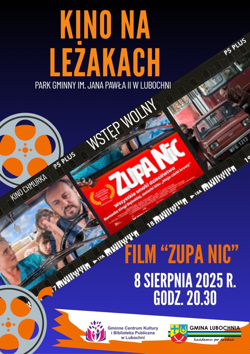W jego ramach w piątek, 8 sierpnia w lubocheńskim Parku Gminnym im. Jana Pawła II zaprezentowany zostanie film zatytułowany "Zupa nic" z 2021 roku w reżyserii Kingi Dębskiej – ciepła, zabawna i trochę szalona opowieść o dorastaniu w czasach PRL-u. Początek seansu zaplanowany jest na godzinę 20.30. Wstęp jest nieodpłatny, organizator zaś – oprócz leżaków – zapewnia także popcorn.