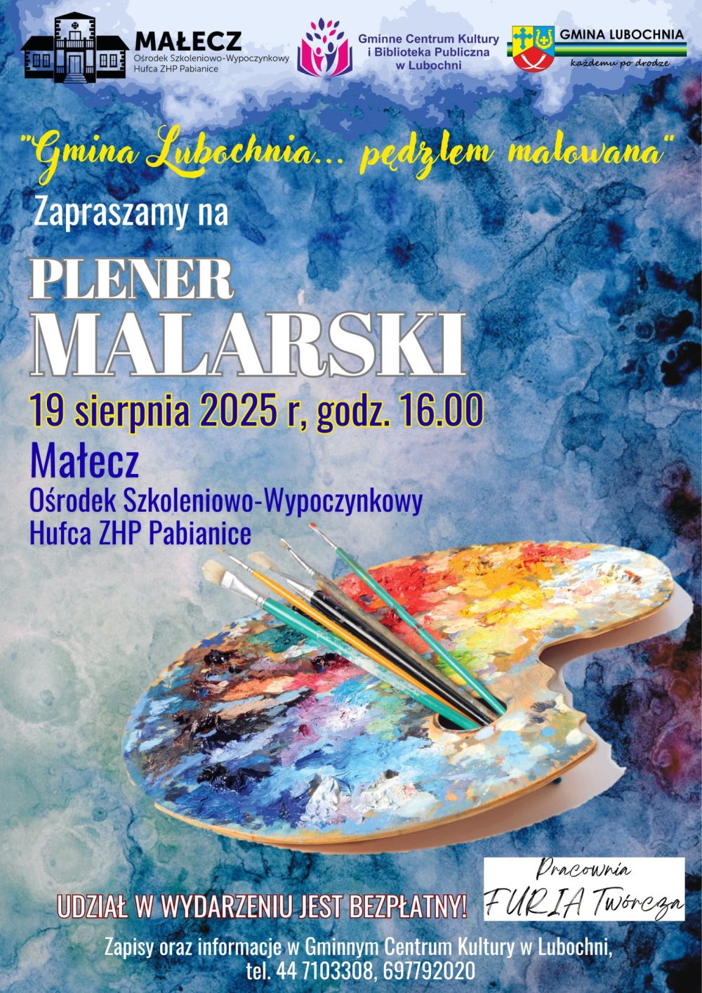 ...zaproszenie ma Gminne Centrum Kultury i Biblioteka Publiczna w Lubochni – organizator pleneru malarskiego w malowniczej scenerii Ośrodka Szkoleniowo-Wypoczynkowego pabianickiego Hufca Związku Harcerstwa Polskiego w Małczu.