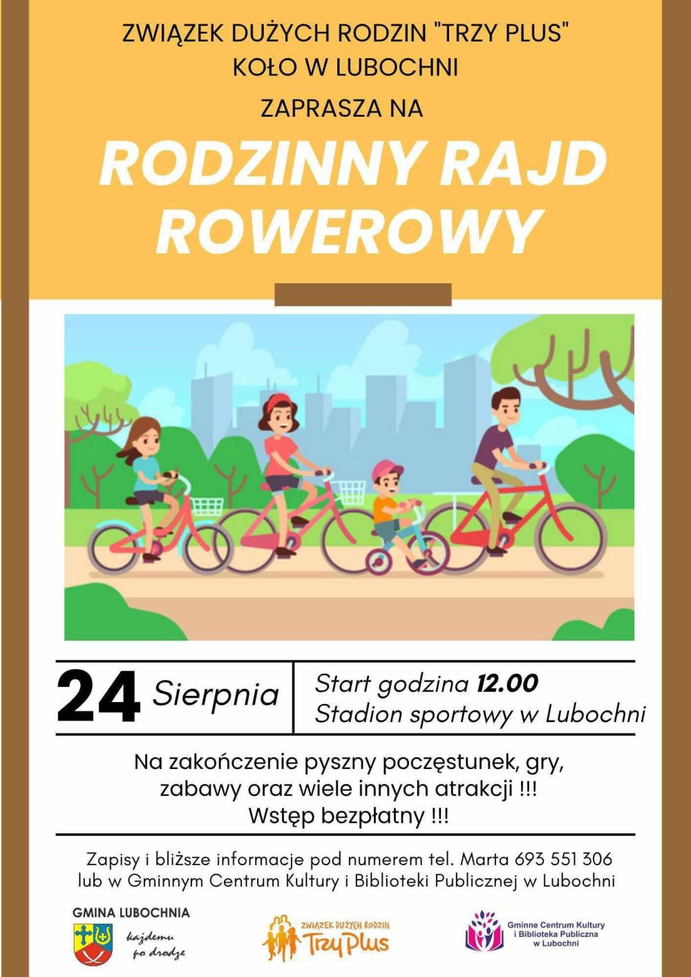 Lubocheńskie koło Związku Dużych Rodzin "Trzy Plus" zaprasza do udziału w organizowanym tradycyjnie na zakończenie wakacji "Rodzinnym Rajdzie Rowerowym".