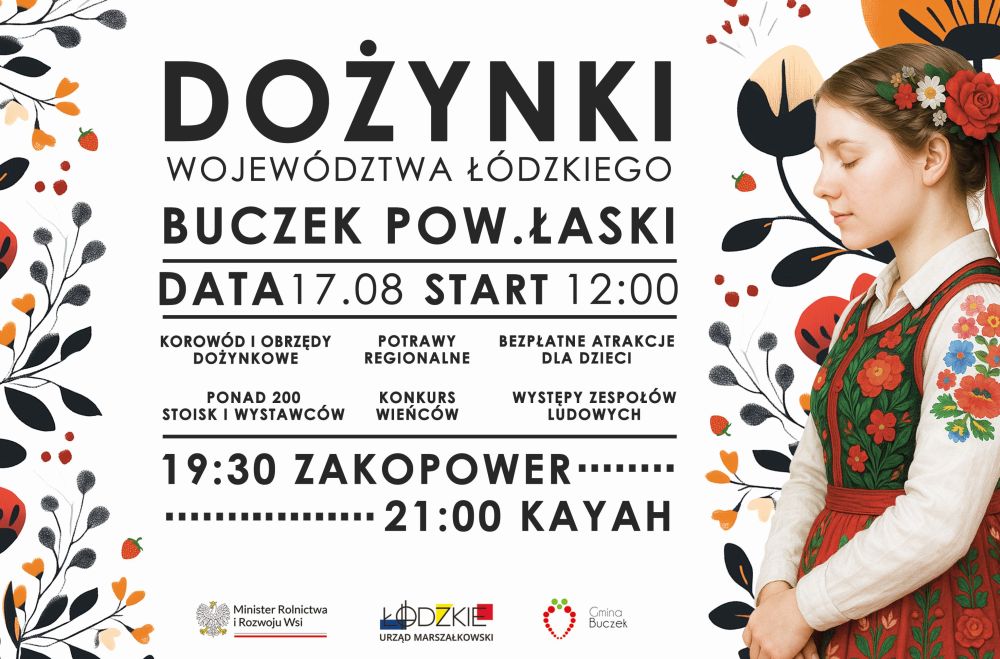 W niedzielę, 17 sierpnia Buczek gościł będzie mieszkańców całego regionu na Dożynkach Województwa Łódzkiego. To doroczne spotkanie rolników, lokalnych wytwórców i wszystkich, którzy lubią regionalne klimaty, będzie okazją do spróbowania domowych przysmaków, obejrzenia kolorowego korowodu i posłuchania koncertów.