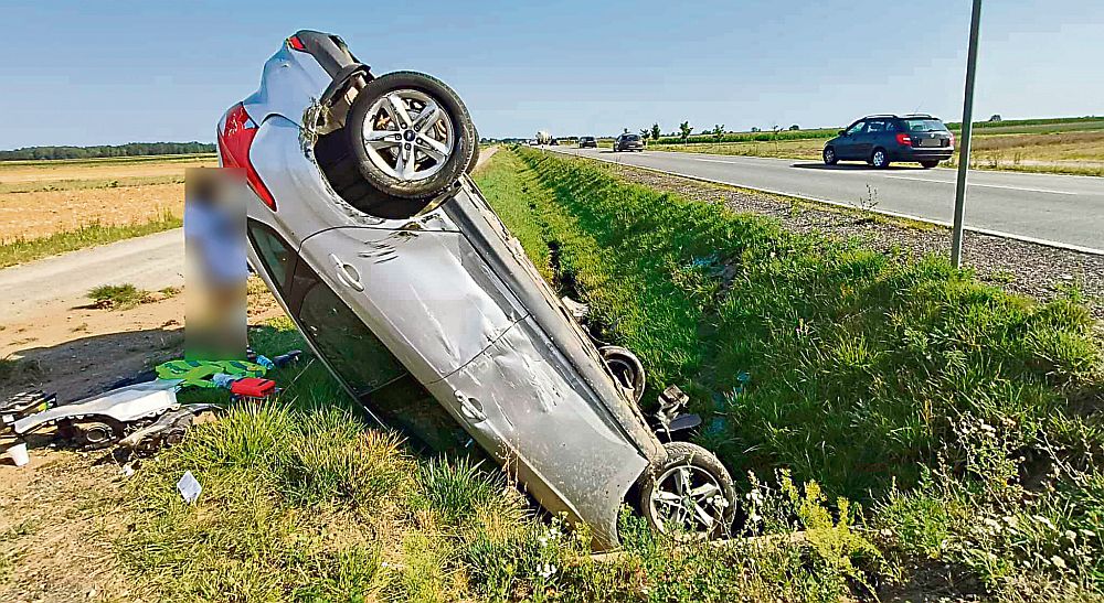 14 sierpnia niebezpiecznie było na DW 713 w Łaznówku. O godz. 13.32 doszło tam do nieprawidłowego wyprzedzania, którego dokonała 34-letnia kobieta kierująca fordem podróżująca z dzieckiem. Wyprzedzała volvo, którym kierował 46-letni mężczyzna. Ford dachował i wjechał do rowu. Na szczęście nikt nie doznał obrażeń.