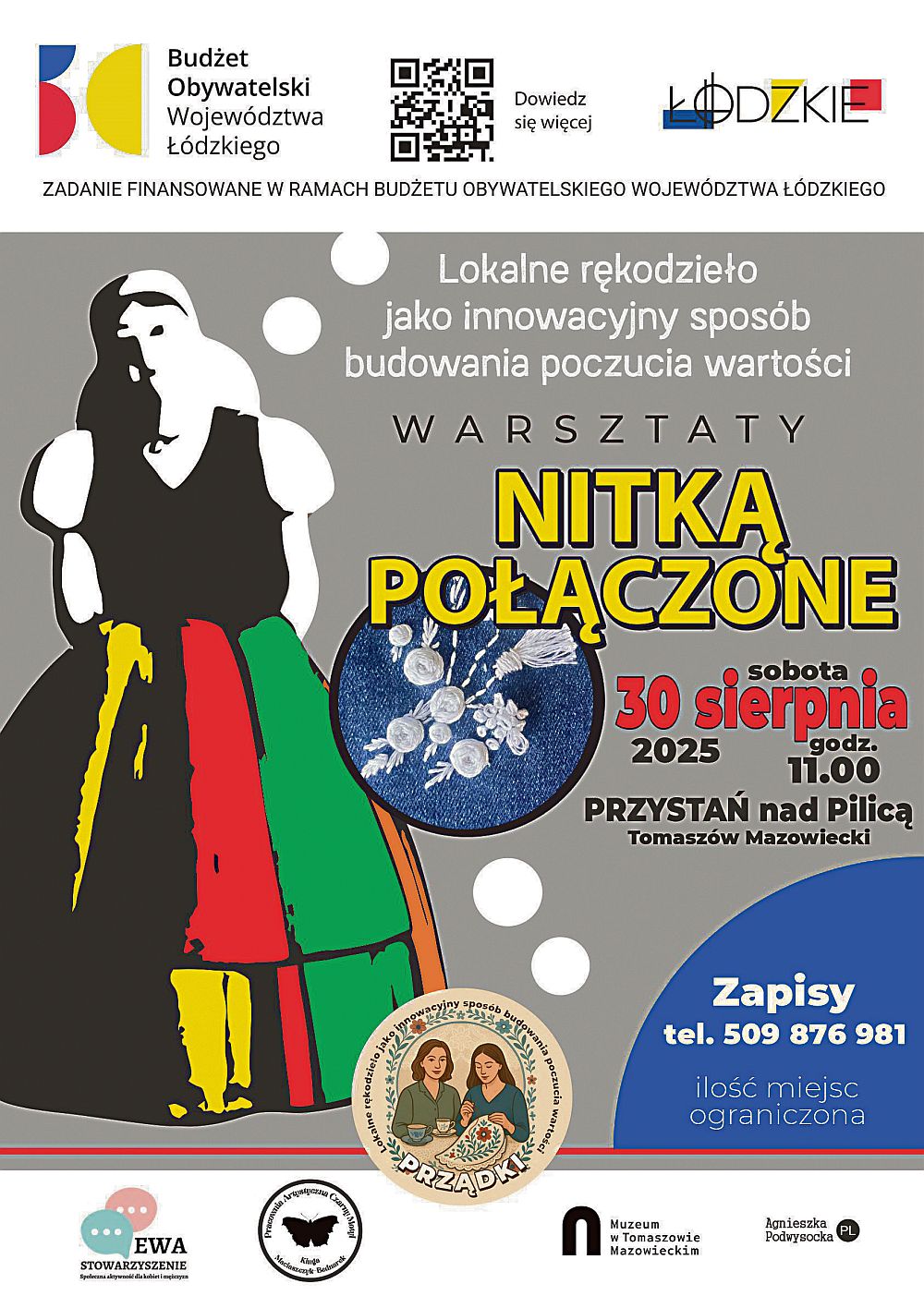 To doskonała okazja, aby rozwinąć swoje umiejętności rękodzielnicze, spędzić czas w twórczej atmosferze i poczuć więź z lokalną tradycją. Zajęcia są bezpłatne (zadanie finansowane jest z Budżetu Obywatelskiego Województwa Łódzkiego) i otwarte dla wszystkich chętnych – niezależnie od wieku i doświadczenia. Wystarczy ciekawość i chęć do tworzenia!