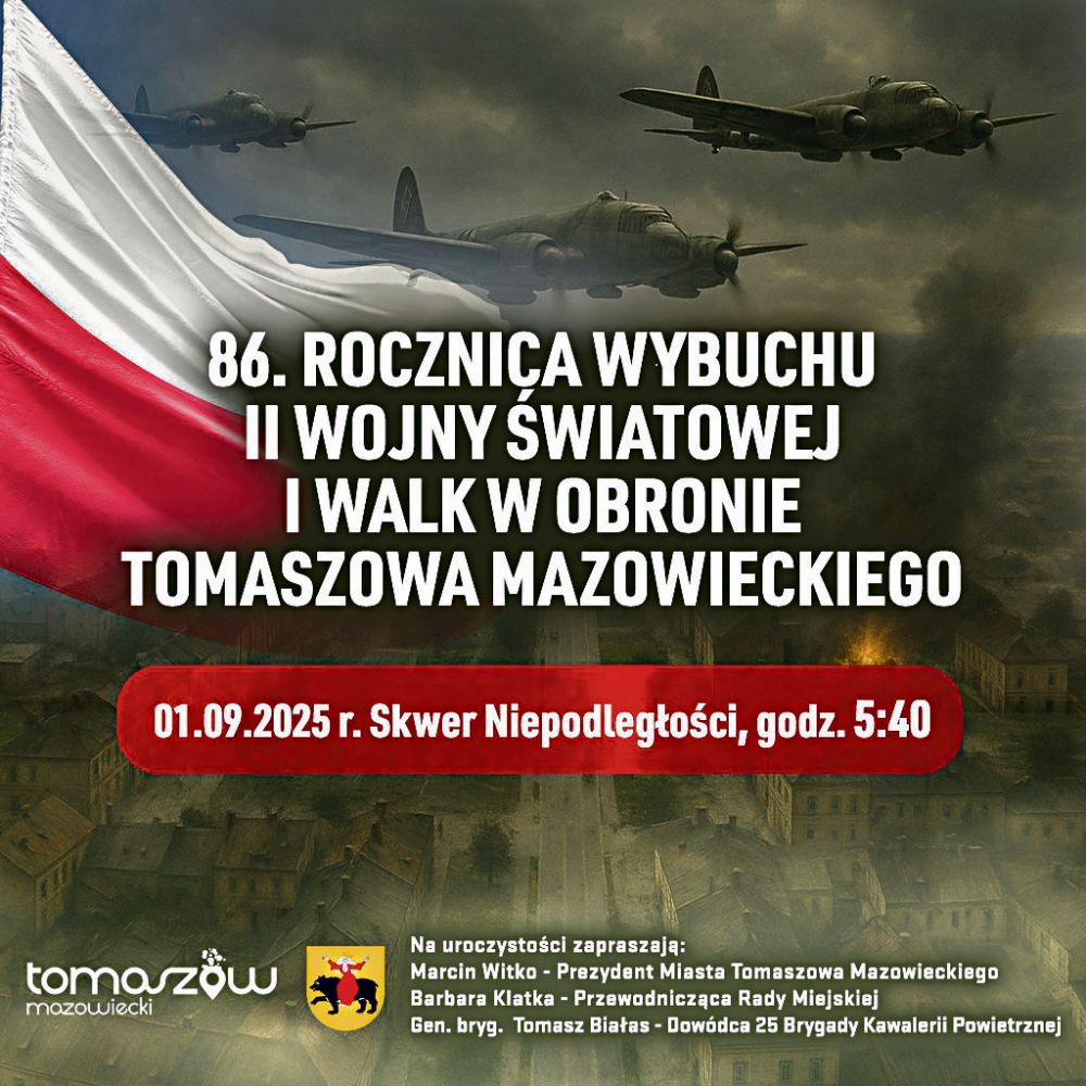 Wcześniej, bo o godz. 5.40, dokładnie wtedy, gdy na Tomaszów spadły pierwsze bomby, na skwerze Niepodległości przed budynkiem Urzędu Miasta oddana zostanie cześć obrońcom Tomaszowa Maz. z września 1939 r. oraz odbędą się uroczystości w 86. rocznicę wybuchu II wojny światowej. Po nich organizatorzy zapraszają uczestników na gorącą herbatę na terenie muzeum.