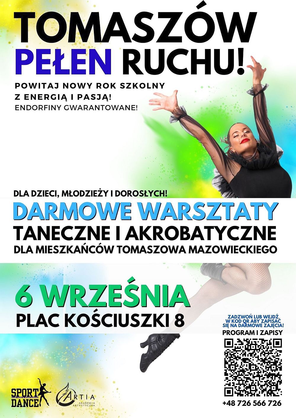 Pod takim hasłem Akademia Artystyczna "Artia" wraz z KTS "Sport-Dance" organizuje dzień darmowych warsztatów tanecznych i akrobatycznych dla dzieci, młodzieży i dorosłych.