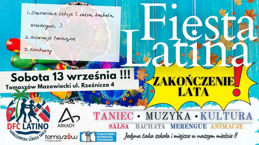 Tęskniliście za karaibskimi klimatami wypełniającymi miejską przestrzeń? Już nie musicie! Na start nowego sezonu w Tomaszowskiej Szkole Tańca DFC Latino odbędzie się kolejna w tym roku Fiesta Latina.