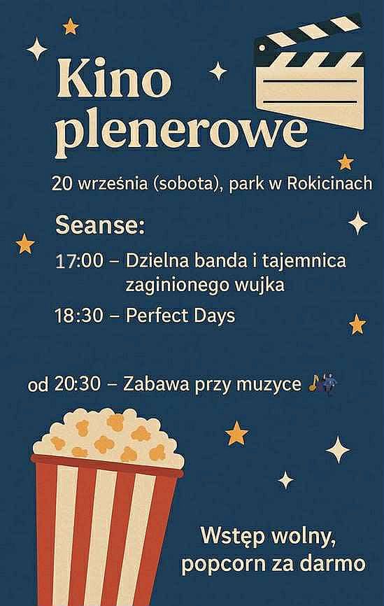 W sobotę, 20 września w rokicińskim parku będzie można obejrzeć familijny film pt. "Dzielna banda i tajemnica zaginionego wujka". Początek tego seansu przewidziany jest na godzinę 17.00. Kolejnego – na 18.30 i będzie to projekcja dramatu pt. "Perfect days" (kategoria wiekowa – od 15 lat). Leżaki czy kocyki trzeba przynieść ze sobą, GOK zapewnia natomiast popcorn bez limitu.