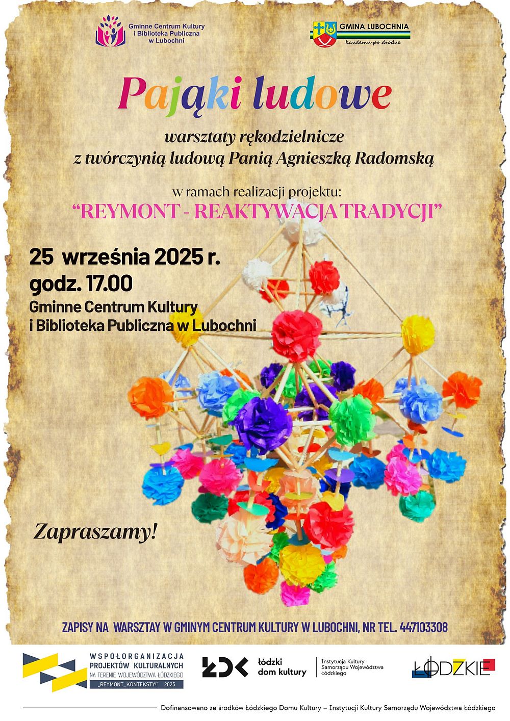 Warsztaty rękodzielnicze z tworzenia pająków ludowych organizuje w czwartek, 25 września Gminne Centrum Kultury i Biblioteka Publiczna w Lubochni.