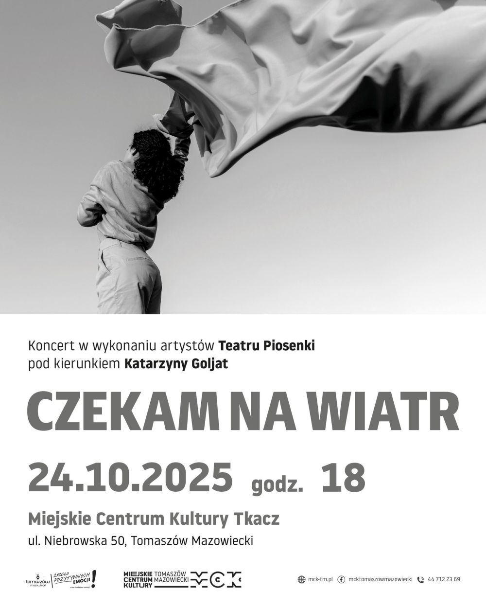 W koncercie zatytułowanym "Czekam na wiatr" zaprezentują utwory z repertuaru: Edyty Geppert, Krystyny Prońko, Stanisława Sojki oraz zespołów Manaam, T.Love i Bajm. Początek o godz. 18.00. Wejściówki w cenie 20 złotych są do nabycia w sekretariacie MCK przy placu T. Kościuszki 18 lub za pośrednictwem serwisu Biletyna.pl.