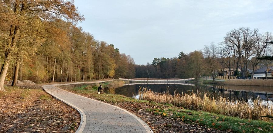 Ścieżkę nad stawem w centrum Spały udało się zbudować bez konieczności wycinania świerków. Gmina Inowłódz zmieniła też projekt rewitalizacji, tak żeby ilość betonu na placu nad rzeką Gać była jak najmniejsza.