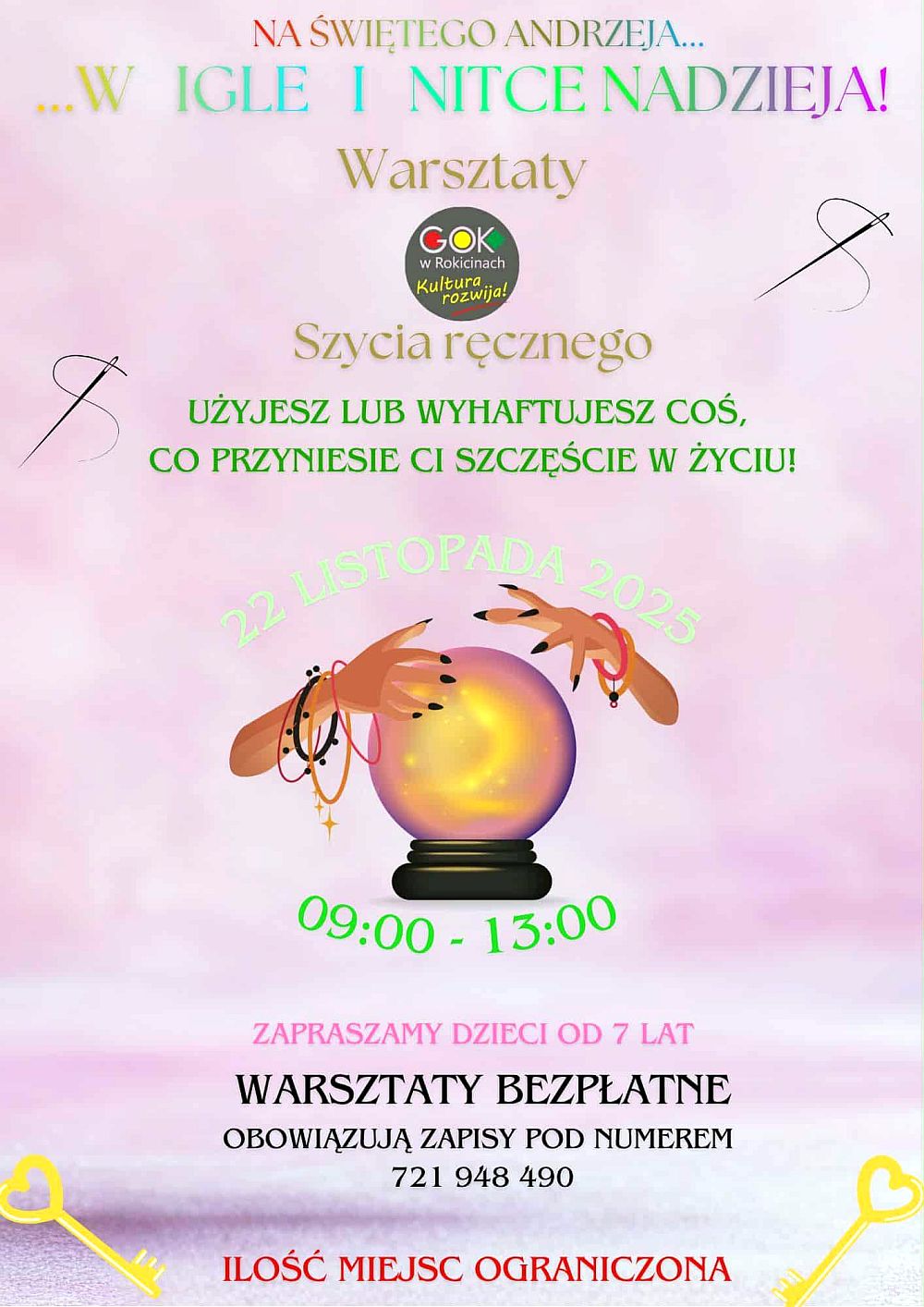– przekonuje Gminny Ośrodek Kultury w Rokicinach. Kolejna edycja popularnych warsztatów szycia ręcznego, organizowanych przez placówkę, dedykowana jest właśnie zbliżającemu się wieczorowi wróżb.