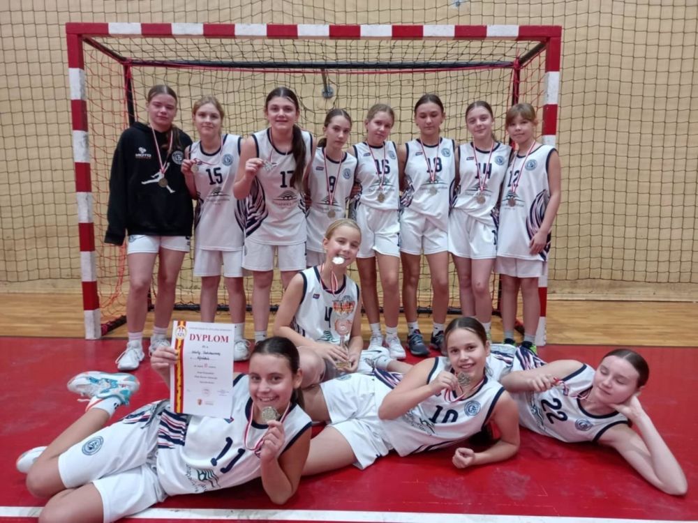 Uczennice Szkoły Podstawowej w Ujeździe, trenujące na co dzień koszykówkę, zostały wicemistrzyniami województwa w miniszczypiorniaku.