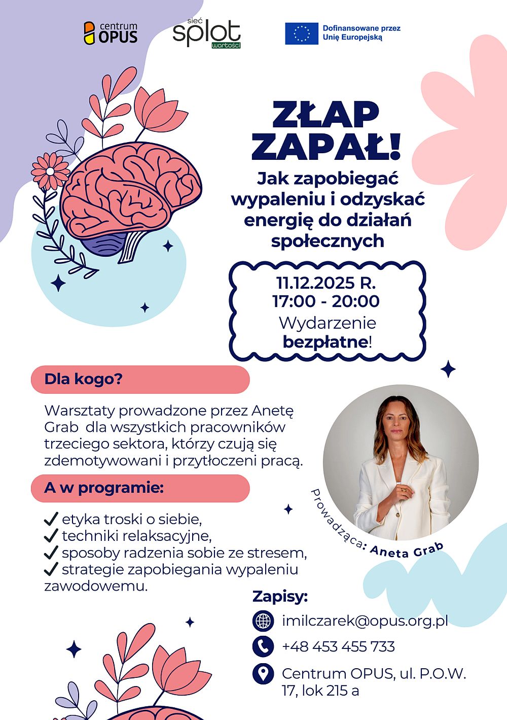 Pod takim hasłem lokalne biuro Centrum OPUS w Tomaszowie Mazowieckim organizuje warsztaty dla aktywistów dotyczące zapobiegania wypaleniu i odzyskiwaniu energii do działań społecznych.