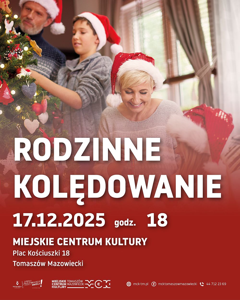 Koncert zatytułowany "Rodzinne kolędowanie" organizuje Miejskie Centrum Kultury w Tomaszowie Mazowieckim. W środę, 17.12 w jego siedzibie przy pl. T. Kościuszki 18 pełen ciepła i radości program artystyczny zaprezentują uczestnicy sekcji wokalnej i gitarowej, zajęć teatralnych oraz wykonawcy utworów fortepianowych. Początek o godz. 18.00. Wstęp wolny.