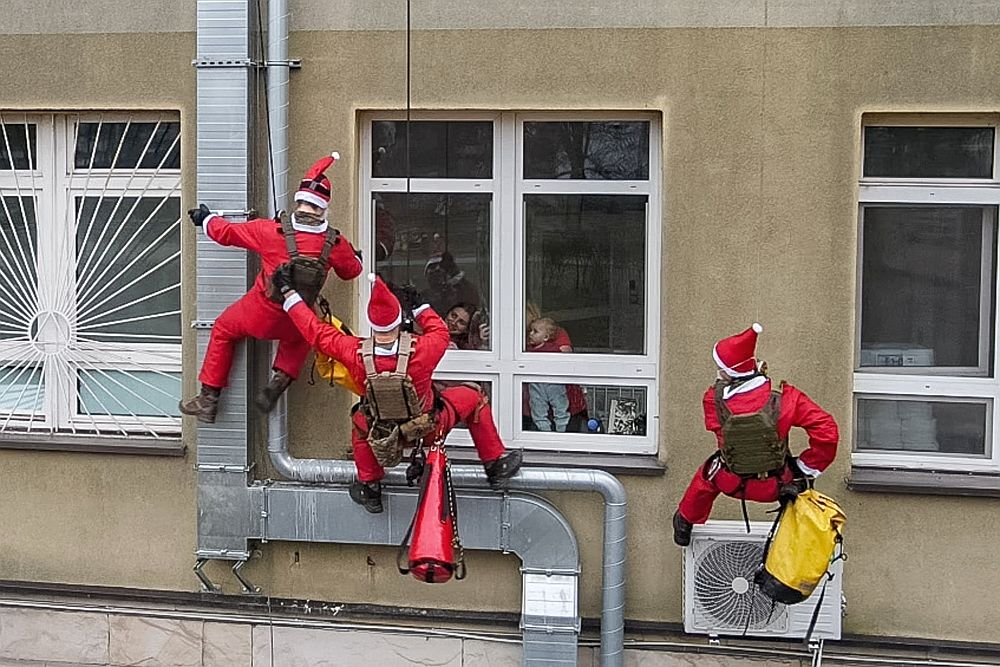 Dwanaścioro mikołajek i mikołajów z 25. Brygady Kawalerii Powietrznej i Wodnego Ochotniczego Pogotowia Wodnego w Tomaszowie Maz. odwiedziło 6 grudnia Tomaszowskie Centrum Zdrowia. Nie była to jednak zwykła wizyta – ośmioro z nich zjechało na linach z dachu i pojawiło się w oknach najmłodszych pacjentów (pozostali koordynowali akcję z "parteru").