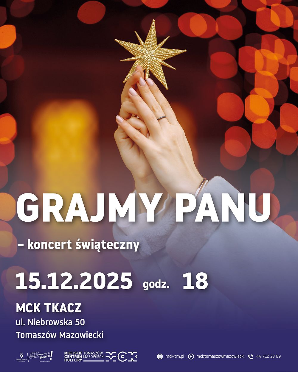 Z kolei w poniedziałek, 15.12 kolędy, pastorałki oraz utwory o tematyce świątecznej zaprezentują uczestnicy zajęć artystycznych z MCK Tkacz. Koncert zatytułowany "Grajmy Panu" w placówce przy ul. Niebrowskiej 50 również rozpocząć się ma o 18.00.