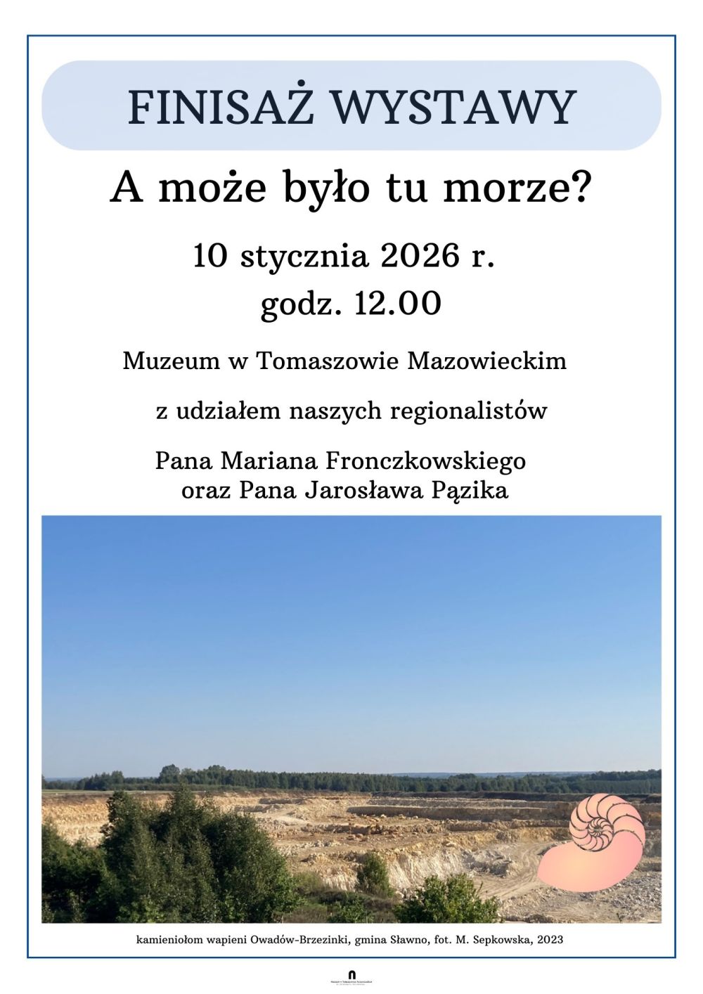 Dobiega końca wystawa "A może było tu morze?", która prezentowana jest w Muzeum im. A. hr. Ostrowskiego. – Dzięki niej w pamięci starszych mieszkańców Tomaszowa obudziły się wspomnienia, a dla dzieci i młodzieży były to chwile zaskakujących odkryć. Nie trzeba daleko wyjeżdżać, aby doświadczyć bliskości jurajskiego świata sprzed 150 milionów lat. Ten świat towarzyszy nam w Tomaszowie w wielu miejscach. To nie tylko nieczynny kamieniołom wapieni – dno morza jurajskiego, ale także wiele tomaszowskich domów i budynków. W ich ścianach z białego kamienia zatrzymane zostały skamieniałe amonity, małże, a może także szczątki wielkich gadów morskich – mówi Magdalena Sepkowska, kustosz działu przyrodniczego.