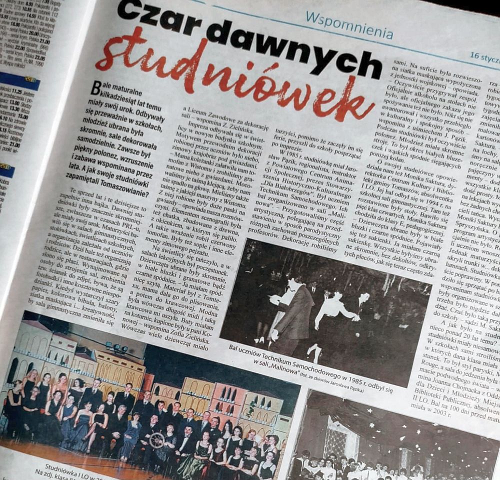 Artykuły o charakterze historycznym i wspomnieniowym zawsze cieszą się zainteresowaniem czytelników i tak było też z tekstem pt. "Czar dawnych studniówek", który ukazał się na łamach TIT nr 2 z br. Okazją do jego powstania były odbywające się w styczniu i lutym studniówki maturzystów z tomaszowskich szkół ponadpodstawowych. Kiedy młodzież z pomocą rodziców szykowała się do jednego z najważniejszych w życiu balów, Tomaszowianie z różnych pokoleń dzięki artykułowi przypomnieli sobie także swoje studniówki. My wróciliśmy wspomnieniami zarówno do tych z czasów PRL-u, jak i lat 90. XX i początków XXI w. (wszak od nich też minęło już ćwierć wieku!). Po przeczytaniu artykułu nasi czytelnicy zaczęli dzielić się swoimi historiami. Dostarczali nam zdjęcia, wzruszali się, snując opowieści o studniówce, o tym jak byli młodzi, jak przygotowywali się do tej imprezy i jak wspaniale się wtedy bawili, przeżywali swoje pierwsze fascynacje i miłości. Wszystkim dziękujemy i na pewno do tematu dawnych studniówek wrócimy!