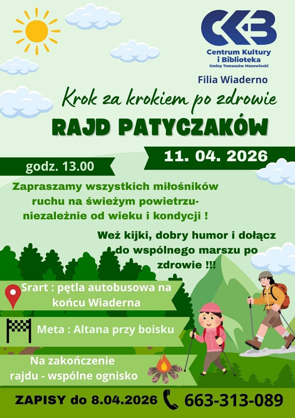 Filia CKiB w Wiadernie zaprasza na rajd nordic walking, który odbędzie się 11 kwietnia o godz. 13.00.