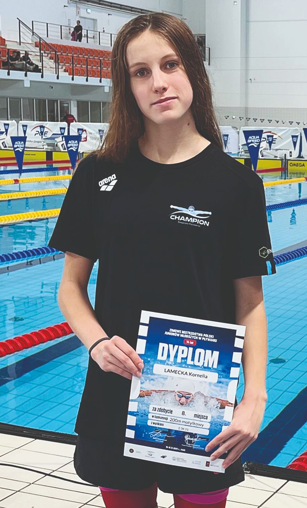 Mistrzostwa kraju 14-latków odbywały się od 19 do 21 grudnia 2025 roku w Zatoce Sportu Politechniki Łódzkiej. Do rywalizacji w 25-metrowej pływalni przystąpiło aż 713 zawodników (331 kobiet oraz 382 mężczyzn) ze 187 klubów z całej Polski. W gronie tym była jedna przedstawicielka tomaszowskiego Championa. Kornelia Lamecka, specjalizująca w stylu motylkowym, startowała w pięciu wyścigach i trzykrotnie plasowała się w czołówce polskich pływaków z rocznika 2011. Tomaszowianka w eliminacjach wywalczyła prawo startu finale A na 200 metrów delfinem i zajęła ósme miejsce z rekordem życiowym 2.34,11. Taki sam wynik osiągnęła na 400 m stylem zmiennym. Była ósma w finale A z kolejną życiówką 5.26,48.