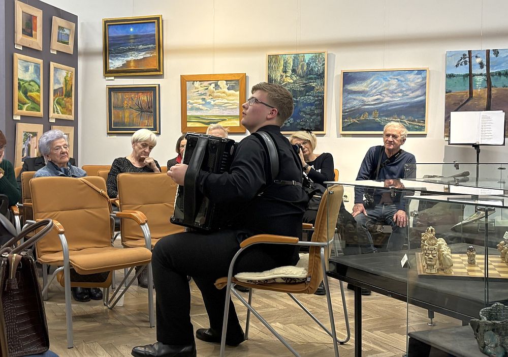 Środowe spotkanie w muzeum było okazją nie tylko do zaprezentowania dorobku, ale też do rozmów, dyskusji o sztuce, snucia planów. Głos zabrali dyrektor muzeum Waldemar Wendrowski oraz prezes SAP-u Jan Grat. Część artystyczną poprowadził Lech Kozdrój. Były utwory grane na akordeonie, deklamacje i piosenki, które zaprezentowali członkowie SAP-u oraz zaproszeni goście. Lech Kozdrój dał solowy koncert na pianinie i akompaniował śpiewającym artystom. Wystąpili też: Henryk Kowalewski (wokal i gitara), Wioletta Rak (sopran i gra na monofonie), Elżbieta Jakóbczyk i Barbara Skawińska( recytacja), Adam Chrzanowski (akordeon). Wśród gości pojawili się także znakomici malarze: Zygmunt Mączyński i Józef Panfil oraz instruktorka malarstwa Helena Kołodziejczyk. Nie zabrakło jubileuszowego tortu. – Niedługo będziemy tworzyć plan działania, na pewno chcemy pokazać dwie wystawy w naszej siedzibie przy ul. Piłsudskiego 26, jak również planujemy wystawę na Zamku w Inowłodzu – informuje Ewa Szadkowska.