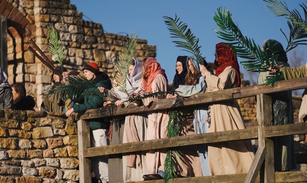 Publiczność, jak mieszkańcy starożytnej Jerozolimy, machała gałązkami oliwnymi, witając Jezusa wjeżdżającego do miasta. U bram Jerozolimy (zamku) stali rzymscy żołnierze, którzy towarzyszyli publiczności niemal przez całe przedstawienie.
