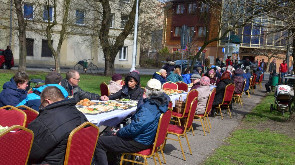 Odbyło się ono w Wielką Sobotę, 8 kwietnia w parku przy ul. Wschodniej o godz. 13. Tam już na kilka godzin przed zbierali się bezdomni i potrzebujący. Pogoda dopisała i ludzi przyszło bardzo dużo. Jak powiedziała nam Anna Dębiec, organizująca darmowy posiłek z mężem Cezarym, rodziną i pracownikami Deko Smaku, przygotowali oni ponad 300 porcji. - Mamy też dla nich paczki na wynos, bo oni bardzo na to czekają, żeby coś mogli też zjeść w domu - dodała.