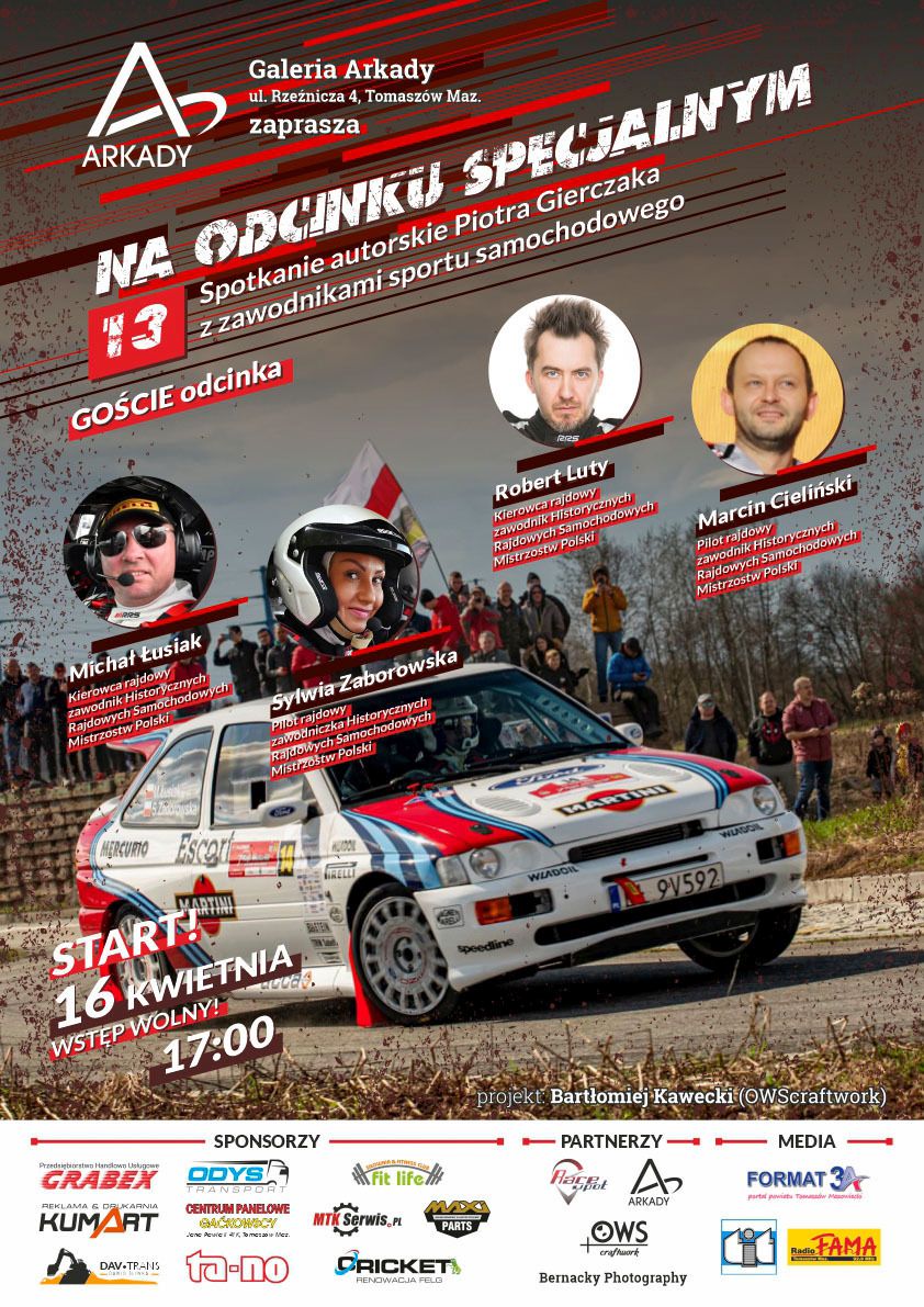Te dwa zespoły kierowca-pilot zawitają do Tomaszowa wraz ze swoimi brykami, by razem z panem Piotrem pojawić się "Na odcinku specjalnym" - 13. z kolei odsłonie jego autorskiego spotkania z zawodnikami sportu samochodowego. Zaplanowane jest na niedzielę, 16 kwietnia na godz. 17.00 w Galerii Arkady. Wstęp wolny.