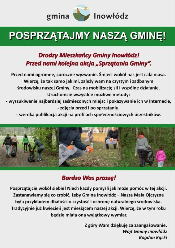 Wójt Bogdan Kącki ogłosił tegoroczną edycję kwietniowej akcji "Posprzątajmy naszą gminę".