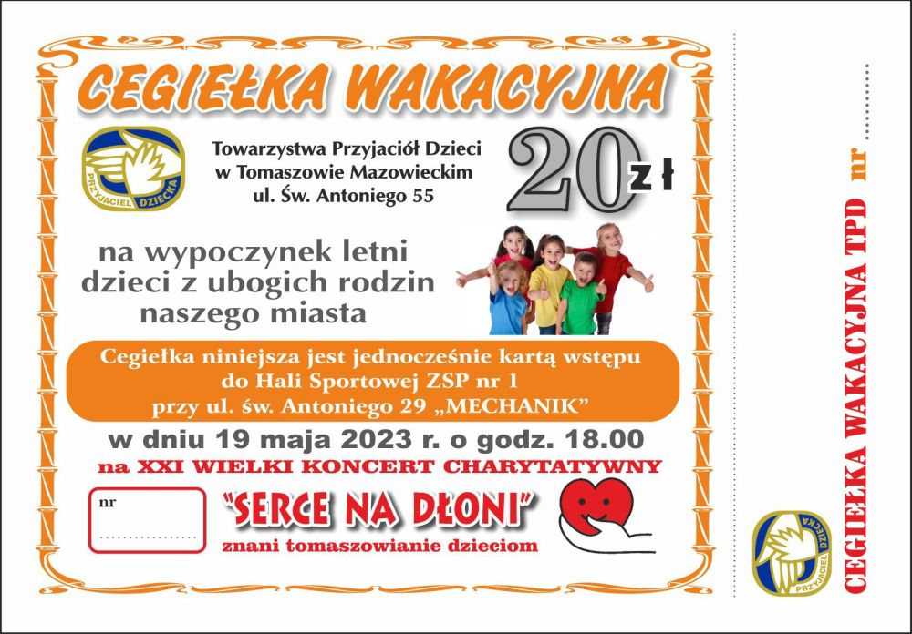 Cegiełka w cenie 20 zł stanowi zarazem kartę wstępu na koncert do hali sportowej ZSP nr 1 ("mechanik"), gdzie 19 maja o godz. 18 rozpocznie się "Serce na Dłoni".